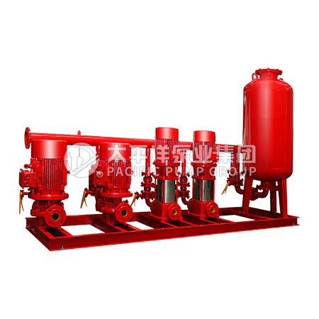 設備由氣壓罐、水泵、控制柜、控制儀表、管道附件等組成的,其泵身由電機和泵兩部分組成。消防增壓系列執行標準是GB27898.3-2011,是水泵行業參照國家建筑標準設計圖集98S205等設計、制造的消防專用的增壓穩壓設備。